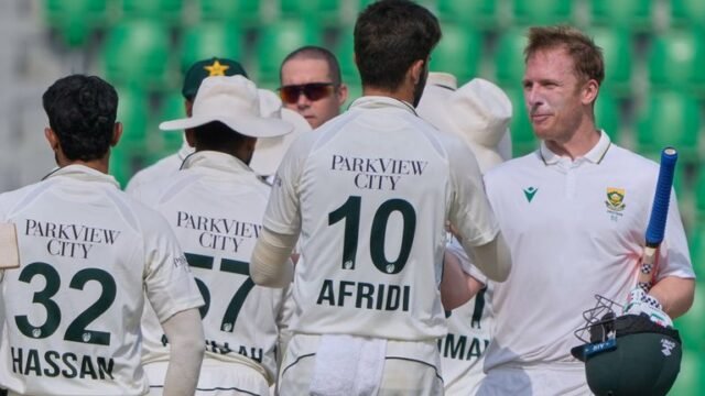 Os Proteas começaram o quarto dia com 51-2 em uma perseguição de 277 e foram eliminados por 183, com o spinner Noman Ali (4-79) e o marcapasso esquerdo Shaheen Shah Afridi (4-33) compartilhando oito postigos.