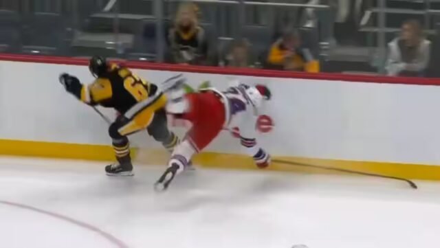 A corrida de 6 pi 4 po a quitté la reencontre face aux Penguins de Pittsburgh na estreia de dois períodos depois de ser tombé de faun inquiétante.