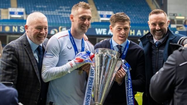 Gerrard impediu que o rival Celtic garantisse o décimo título consecutivo da Premiership da Escócia ao conquistar o título em 2021 – seu terceiro ano no clube.