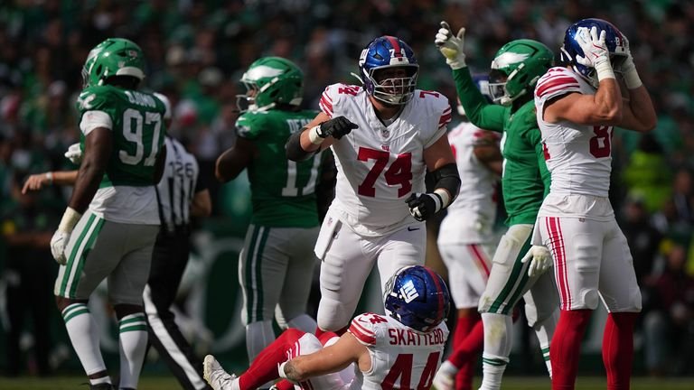 Skattebo correu para três touchdowns, Dart teve uma corrida e outro passe e os Giants venceram os Eagles por 34-17 no início deste mês.