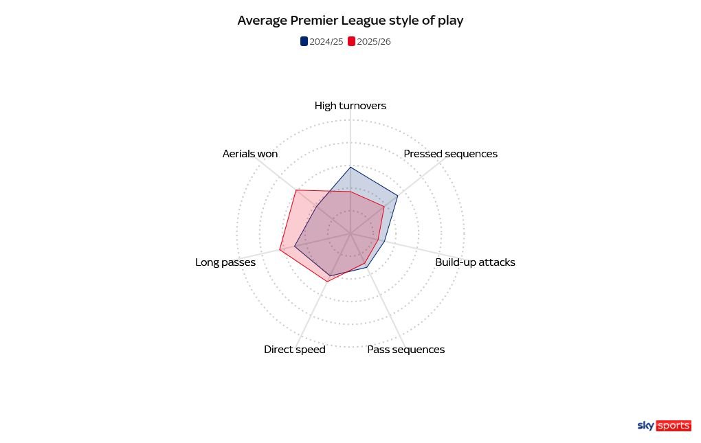 Na verdade, houve, em média, 3,85 lances longos lançados na grande área por jogo nesta temporada, em comparação com 1,52 na temporada passada.