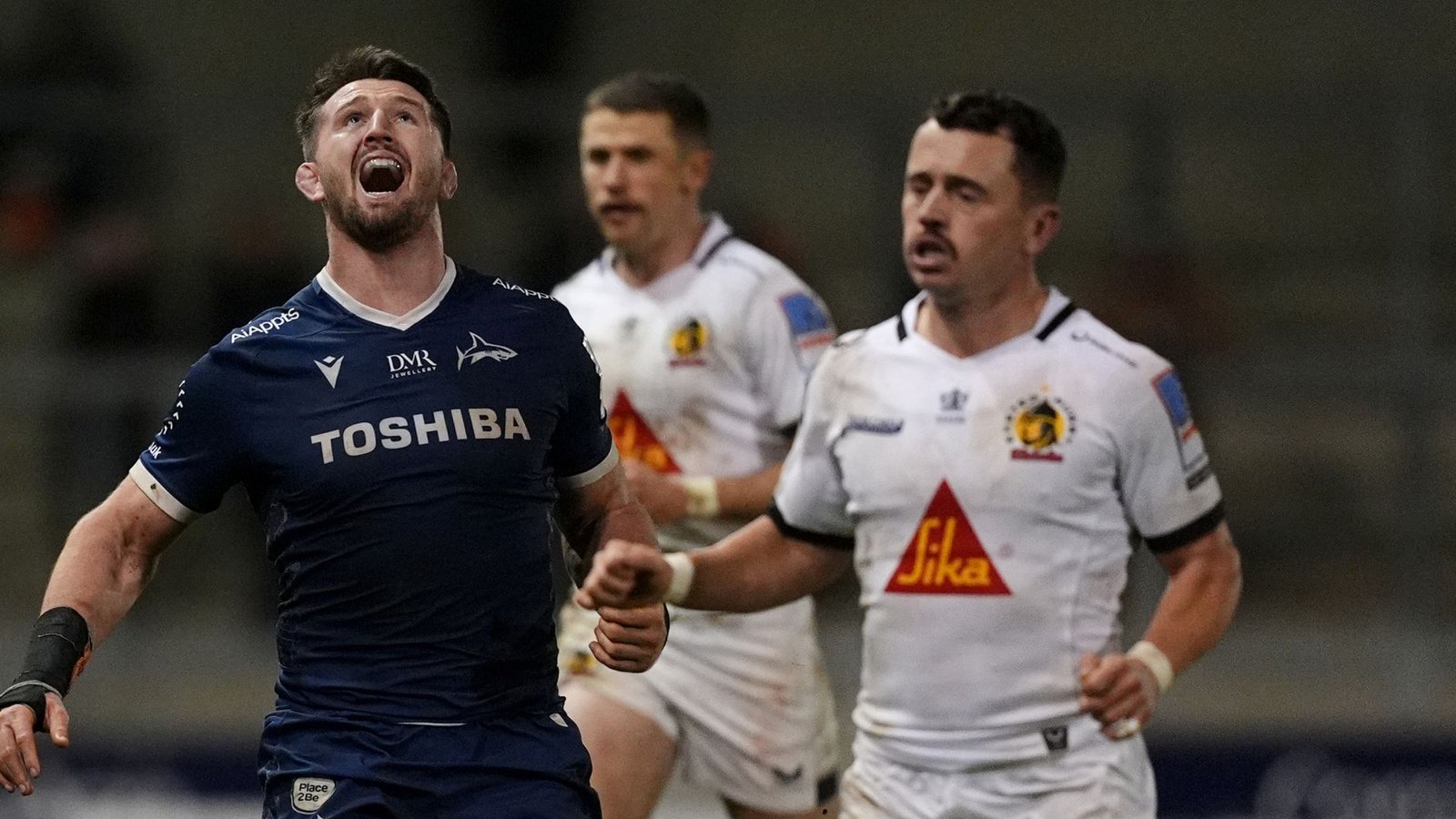 Exeter recuperou de 26-6 para garantir uma vitória dramática por 27-26 e infligir uma rara derrota em casa ao Sale, quando o Gallagher PREM foi retomado após uma pausa de um mês durante as partidas internacionais de outono.