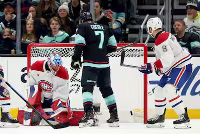 O véu, o porteiro que o ajudou a obter novas vitórias nas 14 surtidas na última rodada da Liga Americana (LAH) foi assinado por seu sexto ganho de campanha contra o Kraken em Seattle, ao lado de três adversários em três períodos. Le Tchèque a tout de même conservé sa fiche parfaite esta temporada com o Tricolore.