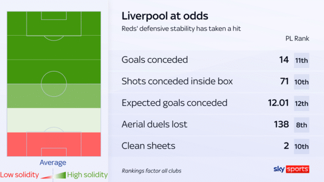 Slot tem trabalho a fazer. A prioridade número um deve ser parar de sofrer gols a uma velocidade alucinante. O último jogo sem sofrer golos do Liverpool foi há seis semanas, contra o Burnley. E eles também têm problemas com lances de bola parada. Apenas Nottingham Forest e West Ham (10 cada) sofreram mais gols em lances de bola parada nesta temporada do que o Liverpool (sete).