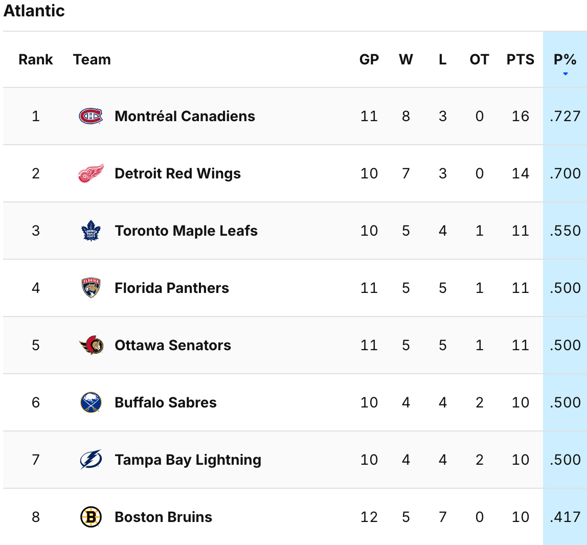 Então, estamos vendo uma mudança de guarda? Será que é hora de o resto da divisão perseguir Montreal e Detroit, enquanto aqueles que tiveram uma série sustentada de sucesso começam lentamente a cair, como Boston?