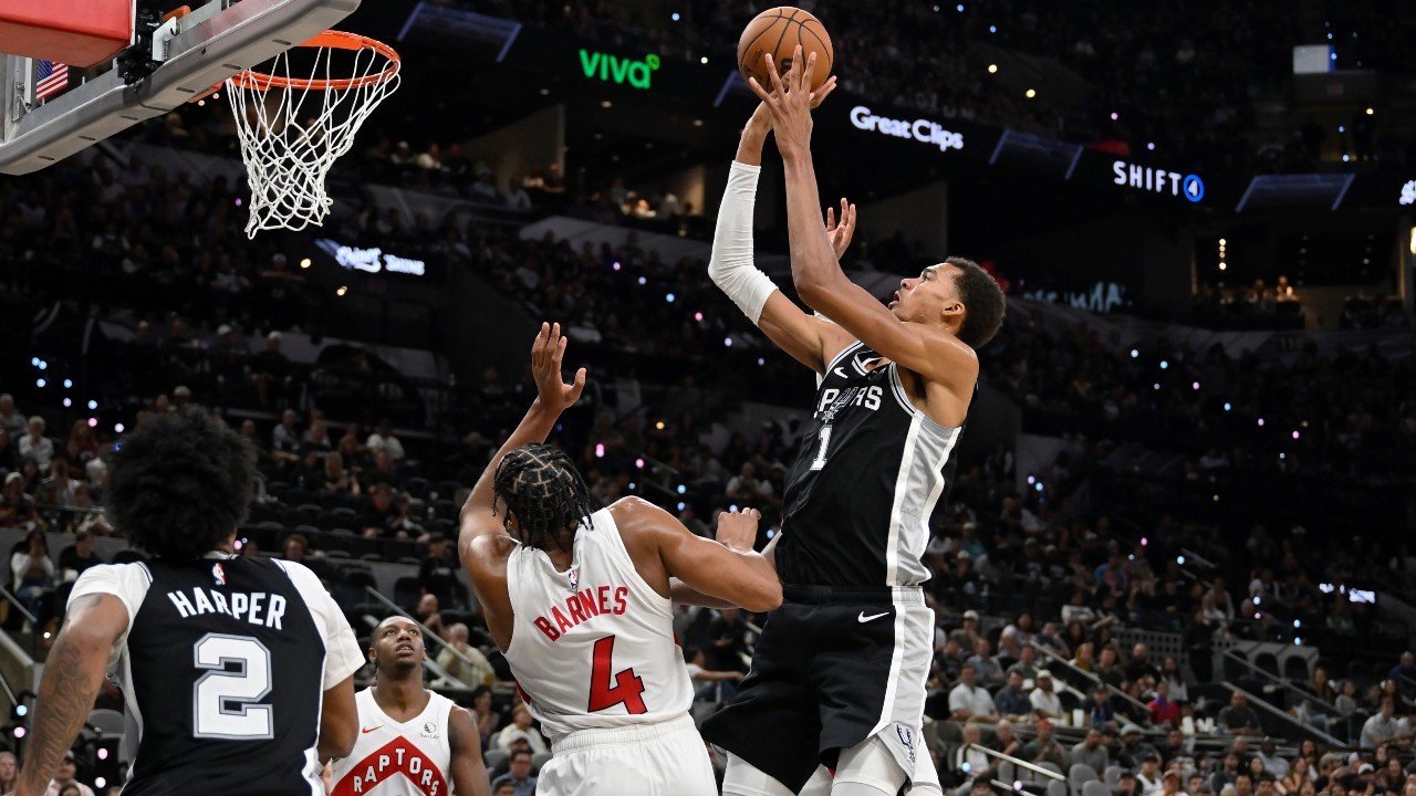 Os Raptors chegaram a oito pontos em algumas ocasiões no quarto período, mas Wembanyama acabou com qualquer esperança de recuperação.