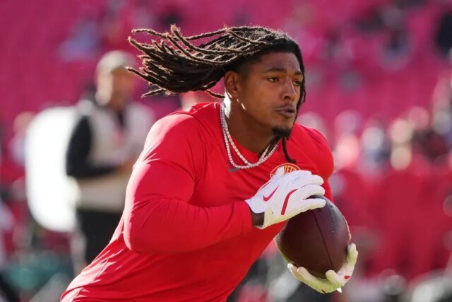 Com Pacheco afastado desta vez, Kareem Hunt, Elijah Mitchell e Brashard Smith provavelmente verão suas respectivas cargas de trabalho aumentarem um pouco.