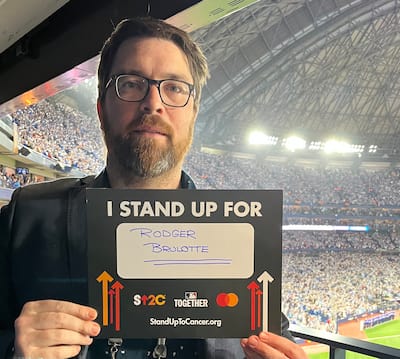 O colega Marc De Foy revelou apenas em uma comovente reportagem publicada em nossa edição de fim de semana que Rodger livrou um grande combate depois de ter feito uma operação para um tumor cancerígeno na coluna vertebral.
