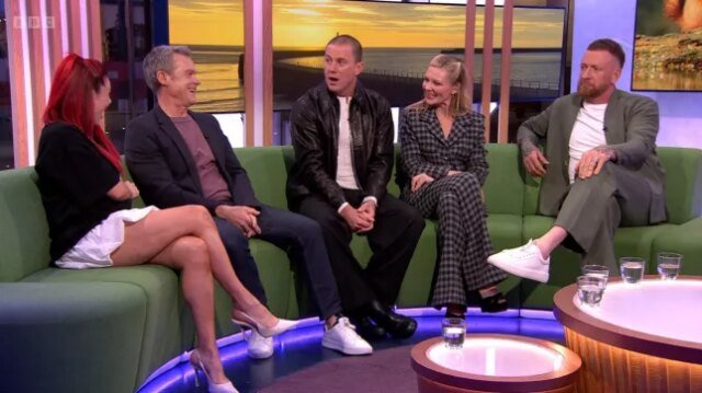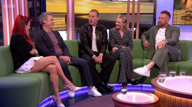 O casal foi convidado no episódio de quinta-feira do The One Show com o ator de Hollywood Channing também no sofá vermelho.