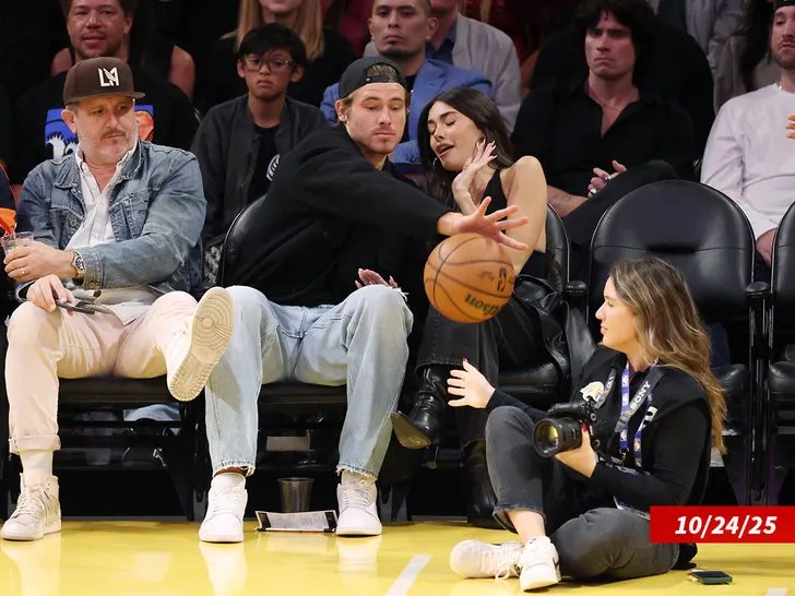 O Chargers QB e sua namorada estrela pop assistiram o Lakers enfrentar o Minnesota Timberwolves de dois assentos na quadra da Crypto.com Area… quando uma bola saiu da quadra direto para eles.