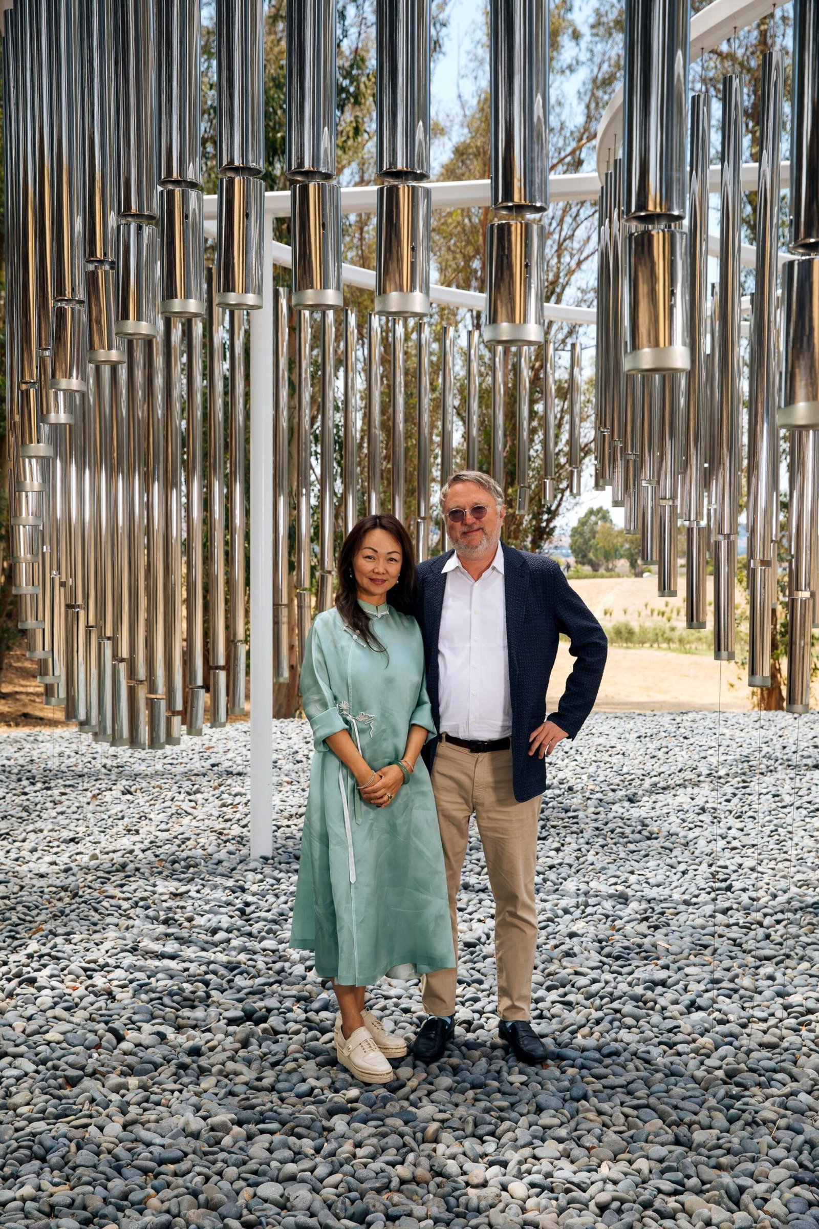 Provavelmente a peça mais fashionable (e mais instagramada) da propriedade é “Love Me”, de Richard Hudson, uma escultura enorme em forma de coração revestida de aço espelhado exageradamente curvado no topo de uma colina distante. A mais recente adição à propriedade (instalada este ano), acessada por um caminho sinuoso que atravessa grama espessa, é o “Oráculo” (2021) de Sanford Biggers, que funde máscaras, bustos e figuras africanas e europeias. A “Sonic Mountain (Sonoma)” de Aitken está inserida em um profundo bosque de eucaliptos na extremidade da propriedade. É composto por 365 sinos de aço inoxidável, suspensos por uma cobertura round, cada um ajustado para captar o vento e produzir uma harmonia suave.