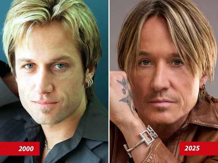 Aqui está uma versão de Keith de 33 anos exibindo seu queixo esculpido durante uma sessão de fotos em Brisbane, Queensland (Imagem: Instagram)esquerda). Este foi o ano em que sua carreira ganhou impulso, levando à sua primeira música número um, “However for the Grace of God”, no ano seguinte.