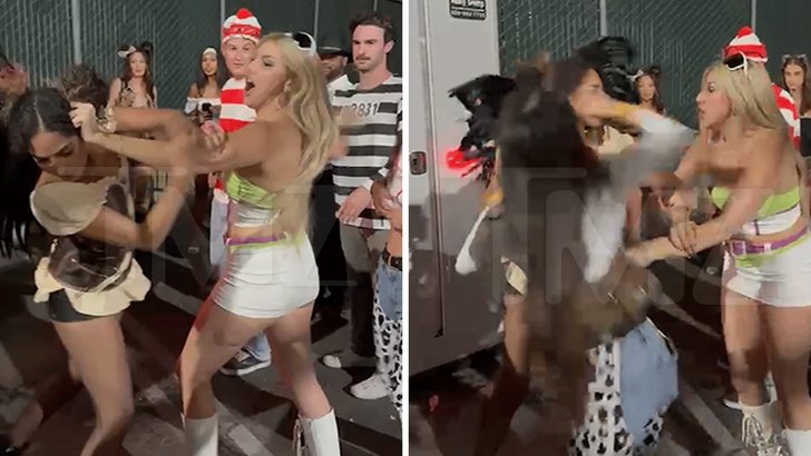Um bando de festeiras irritadas transformou o Halloween em uma festa de terror… explodindo em uma briga selvagem que desencadeou uma resposta policial.