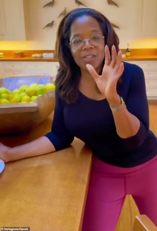 Na legenda da postagem, Winfrey escreveu: ‘Um brinde às sobras do Dia de Ação de Graças! Minha refeição nos próximos dias’, seguida por um emoji de perna de peru.