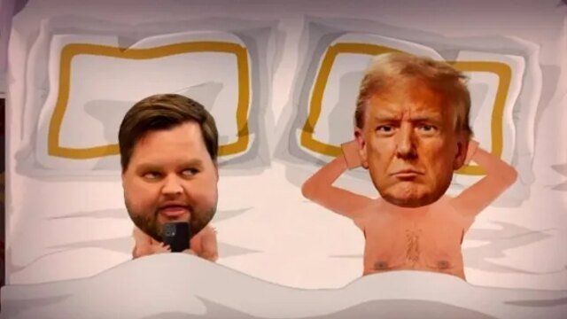 Em uma cena, Trump e Vance estão juntos na cama, nus, quando Vance se inclina e pergunta: ‘E quanto a Satanás?’ com quem Trump concebe um filho amoroso no início do programa.