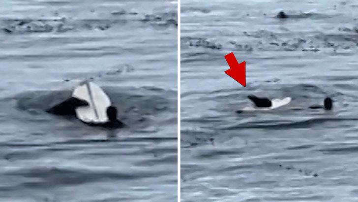 Foi o assalto mais fofo que você já viu… O vídeo, postado na terça-feira, começa com a lontra já em cima da prancha e o surfista embaixo.