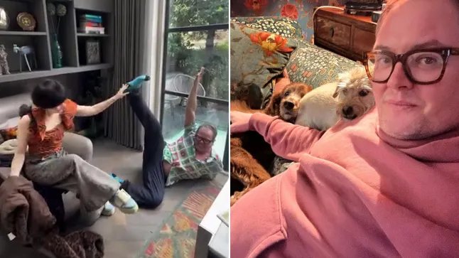 Nas últimas semanas, Alan e seu colega traidor Cat compartilharam vídeos deles em capas andando pela casa do apresentador do Chatty Man em Londres, com seu jardim modesto, sala de estar elegante, tetos altos impressionantes e bar de coquetéis.