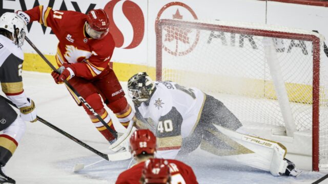 Joel Farabee, com gol short-handed, Ryan Lomberg, Adam Klapka e Jonathan Huberdeau, com rede vazia, também marcaram para o Flames (15-17-4), que melhorou para 7-1-1 nos últimos nove jogos no Saddledome.