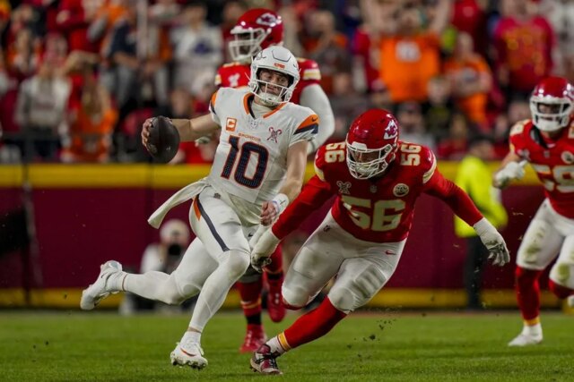 Nix também correu para um landing na vitória do Denver (13-3) pela 12ª vez em 13 jogos. Os Broncos possuíram a bola por 39:28 durante a disputa da noite de Natal e limitaram os Chiefs (6-10) a 42 jogadas ofensivas e 139 jardas no whole.