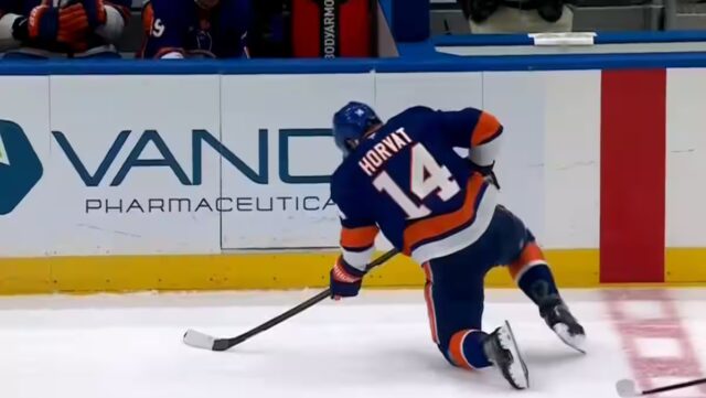 Horvat, dont le genou parece avoir été touché, s’est difficilement relevé de la patinoire. Il n’a pas effectué d’autre presença sur la patinoire par la suite. À VOIR EN VIDÉO PRINCIPALE