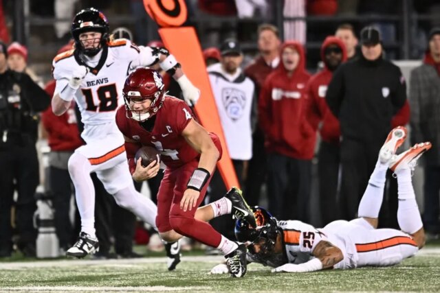 Zevi Eckhaus passou para 334 jardas e três touchdowns para ajudar o estado de Washington a registrar uma vitória por 34-21 sobre o estado de Utah na tarde de segunda-feira no famoso Idaho Potato Bowl em Boise, Idaho.