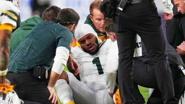 Parsons estava a poucos passos de outro saco quando de repente parou e caiu no chão, agarrando o joelho esquerdo. E naquele momento, os Packers perderam mais do que um confronto last com os Broncos.