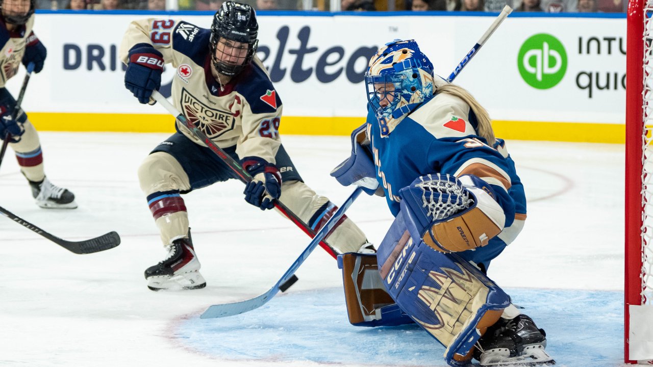 Marie-Philip Poulin, Shiann Darkangelo e Natalie Mlynkova também marcaram para o Victoire (4-1-0-0), que passou a ocupar o segundo lugar com 11 pontos.