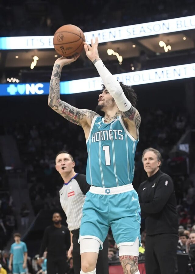 LaMelo Ball marcou 23 pontos com a ajuda de quatro cestas de 3 pontos e o Charlotte Hornets venceu o visitante Washington Wizards por 126 a 109 na noite de terça-feira.