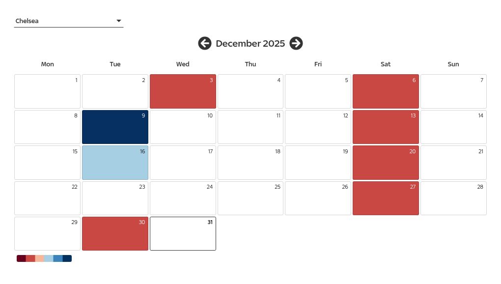 - Quarta-feira, 14 de janeiro: Arsenal (H) – Copa Carabao, início às 20h (ao vivo Esportes celestes)