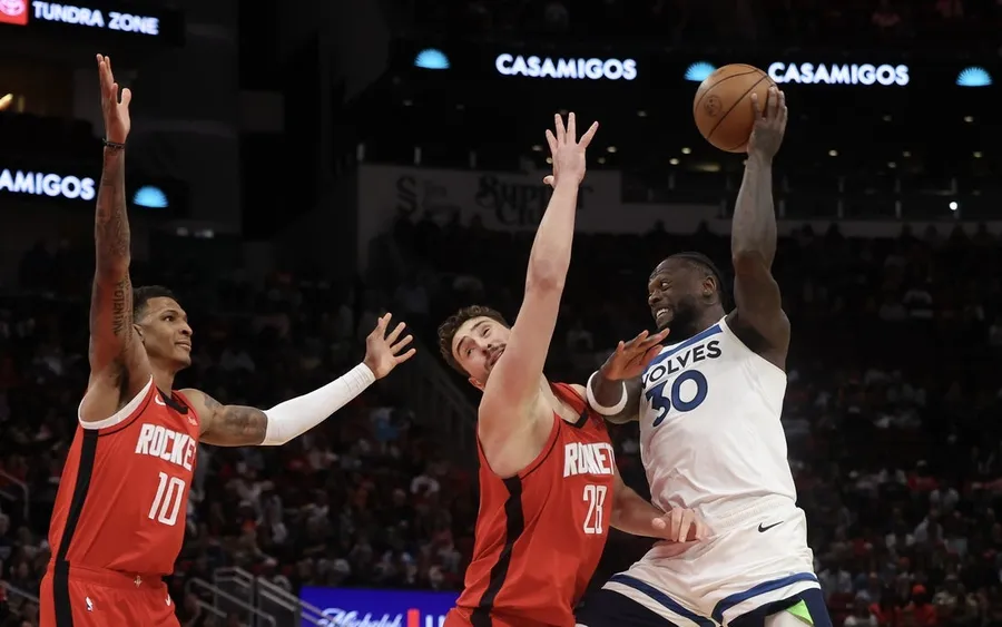 Apesar de seus problemas ofensivos, os Rockets continuaram lutando. Reid perfurou uma cesta de 3 pontos que ampliou a vantagem do Minnesota para nove, apenas para os Rockets fecharem o intervalo com um floreio. Jabari Smith Jr. bloqueou um remate de Randle para o aro antes de Houston executar um set ofensivo tardio com perfeição, com Sheppard encontrando Durant para um escanteio que reduziu a margem para 55-53 no intervalo.