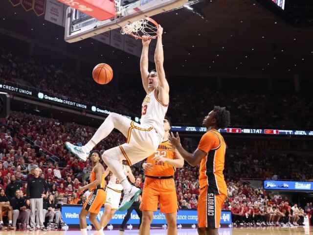 Os Cyclones voltaram, no entanto, quando Dominick Nelson marcou uma jogada de três pontos em um saltador e Momcilovic acertou outra cesta de 3 pontos para uma vantagem de 40-36 no estado de Iowa com 1:24 do fim.