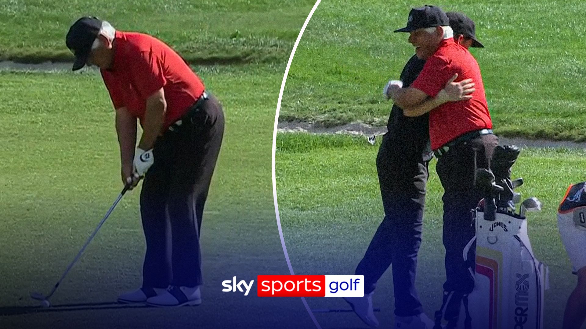Durante a rodada closing do Campeonato PNC de 2025, Lee Trevino acerta uma águia no buraco 13, par quatro, no Ritz-Carlton Golf Membership.