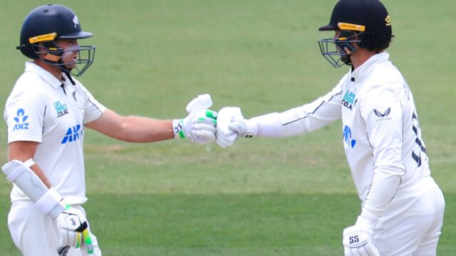 Tom Latham e Devon Conway conquistaram um lugar único na história do Teste quando sua parceria de 192 corridas no segundo turno abriu o caminho para a declaração da Nova Zelândia em 306-2 no quarto dia do terceiro Teste contra as Índias Ocidentais.