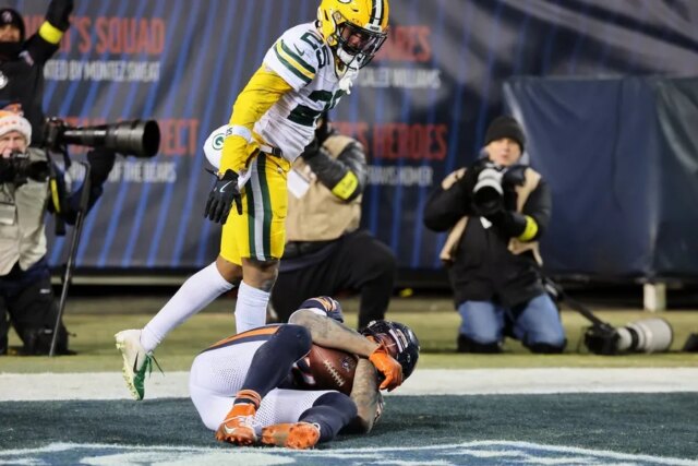 Inexperienced Bay respondeu com um remate para a linha de 3 jardas dos Bears, mas o fumble de Jacobs foi recuperado pelo Chicago.