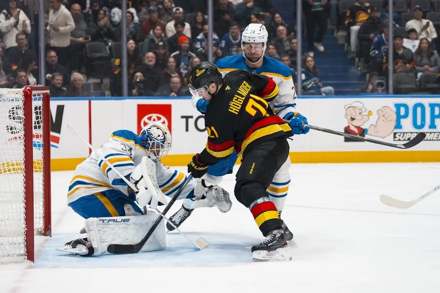 Rasmus Dahlin e Tage Thompson marcaram um gol e uma assistência cada um para o Buffalo Sabres na vitória por 3 a 2 sobre o anfitrião Vancouver Canucks na quinta-feira.
