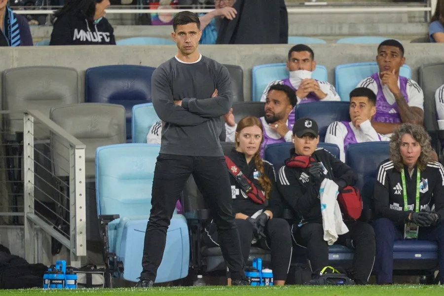 20 de setembro de 2025; Saint Paul, Minnesota, EUA; O técnico do Minnesota United, Eric Ramsay, assiste ao jogo contra o Chicago Fireplace no primeiro tempo no Allianz Discipline. Crédito obrigatório: Matt Blewett-Imagn Pictures