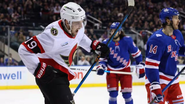 Brady Tkachuk l’a déjoué pour son 200e mas en carrière, en première períodode. O capitão dos Sénateurs acumulou quatro pontos, enquanto Cozens e Ridly Greig en ont eu trois.