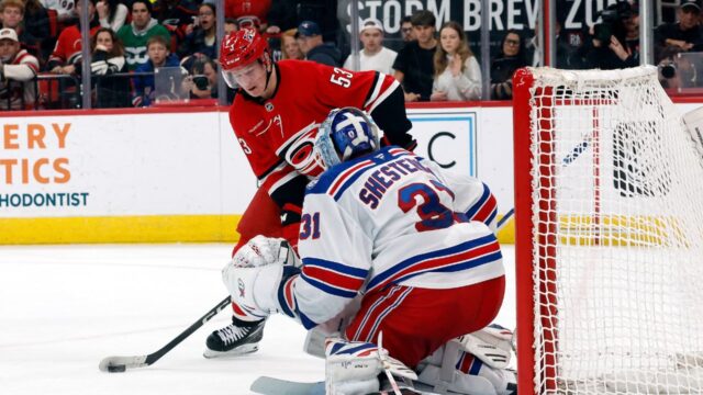 Bussi estava na rede inesperadamente porque no início do dia, o candidato a titular Pyotr Kochetkov, que eliminou o Rangers no mês passado, foi colocado na reserva por lesão. O técnico Rod Brind’Amour disse antes do jogo que Kochetkov optou pelo que provavelmente será uma cirurgia de encerramento da temporada devido a uma lesão na parte inferior do corpo.