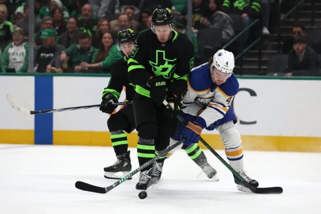 Os Sabres finalmente conseguiram marcar aos 7:44 do segundo período, cortesia de Doan. Thompson pegou um disco solto na linha azul dos Stars, segurou-o no canto e depois levou-o para trás da rede, onde o protegeu antes de alimentar Doan no círculo esquerdo para um chute instantâneo que venceu o lado curto de DeSmith para empatar em 1-1.