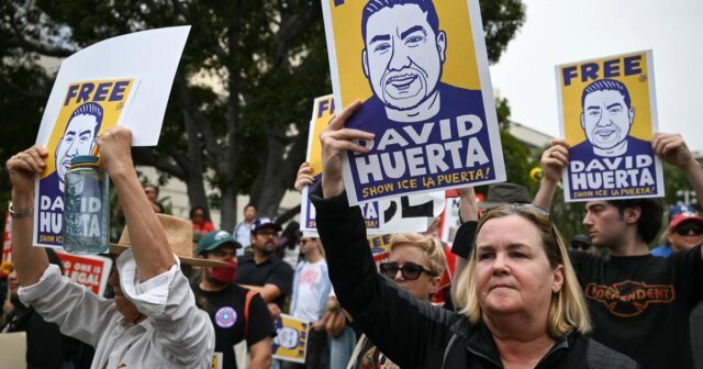 Huerta, presidente do Sindicato Internacional de Funcionários de Serviços da Califórnia, foi preso em 6 de junho enquanto protestava em frente a uma empresa em Los Angeles, onde agentes federais investigavam suspeitas de violações de imigração.