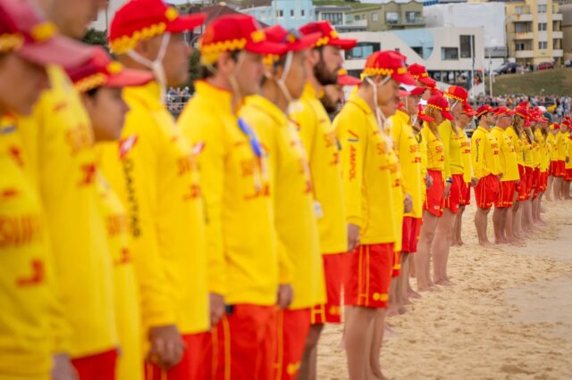 Centenas de salva-vidas do surf se reuniram em Praia de Bondi para prestar homenagem às vítimas do ataque terrorista de domingo.