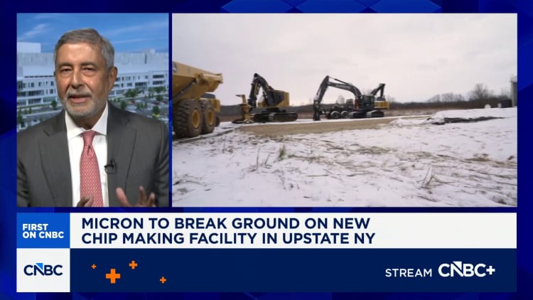 Mehrotra disse que a Micron está gastando US$ 200 bilhões para construir mais capacidade de produção nos EUA, incluindo duas fábricas, ou fabs, em Idaho e uma instalação de 600.000 pés em Clay, Nova York, onde a empresa foi inaugurada na sexta-feira. Mehrotra disse que levará alguns anos para construir as instalações, incluindo salas limpas e equipamentos de produção. Secretário de Comércio, Howard Lutnick compareceu o inovador. A Micron disse que investiria US$ 100 bilhões nessa fábrica.