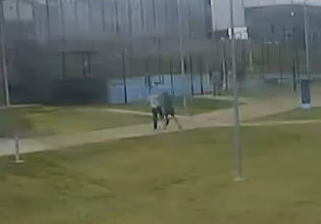 Na filmagem, o prisioneiro tira a camisa e anda enquanto outros policiais correm em socorro do guarda ferido, mas os presos têm outras ideias e voltam ao ataque.