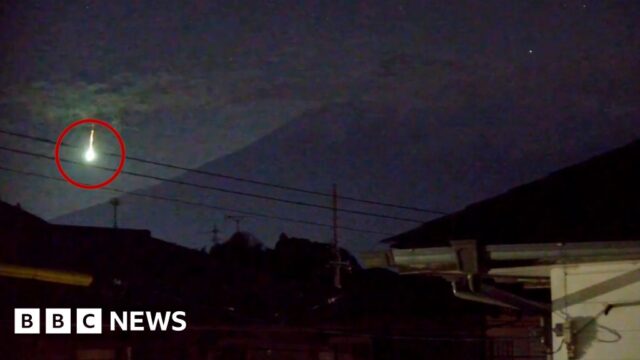 Imagens de CCTV do Museu da Cidade de Hiratsuka, no Japão, capturaram o momento em que um meteoro passou pelo céu noturno sobre o Monte Fuji, no Japão, na sexta-feira.