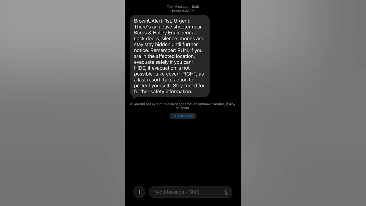 Em uma mensagem de voz para os alunos, funcionários da escola disseram que havia um atirador ativo perto do prédio de engenharia Barus and Holley.