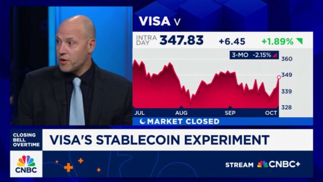 Houve quase US$ 9 trilhões em transações de stablecoin nos últimos 12 meses, de acordo com Visaenquanto a avaliação atual de todas as stablecoins existentes é de mais de US$ 300 bilhões, mostram os dados da Coinmarketcap.