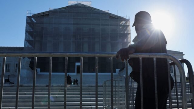 Um policial da Suprema Corte dos EUA monta guarda no primeiro dia de sua nova sessão em Washington, DC, EUA, 6 de outubro de 2025.