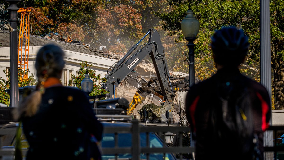 As equipes de construção começaram a demolir a Ala Leste da Casa Branca na segunda-feira, o que irritou os principais democratas e figuras liberais da mídia.