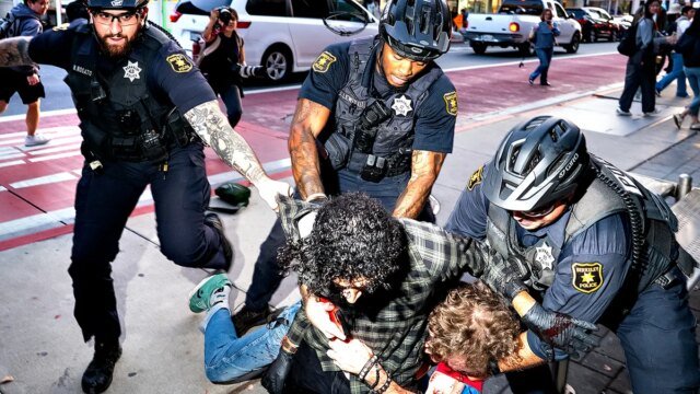 À medida que os protestos continuavam, alguns dos gritos ao longo da noite incluíam: “F— ICE”, “Fascistas fora de Berkeley”, “Liberdade de expressão” e “Trump é um fascista, ele deve ser removido”.
