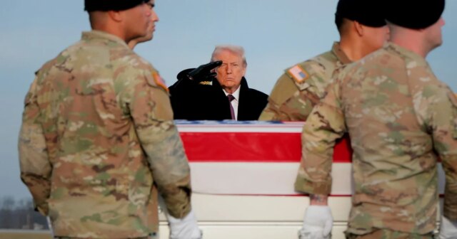 O presidente Trump e o secretário de Defesa Hegseth participaram do transferência digna na Base Aérea de Dover no início desta semana pelos dois soldados mortos, o sargento. William Howard e o sargento. Edgar Torres Tovar, ambos da Guarda Nacional de Iowa, e o intérprete, Ayad Mansoor Sakat.
